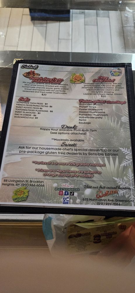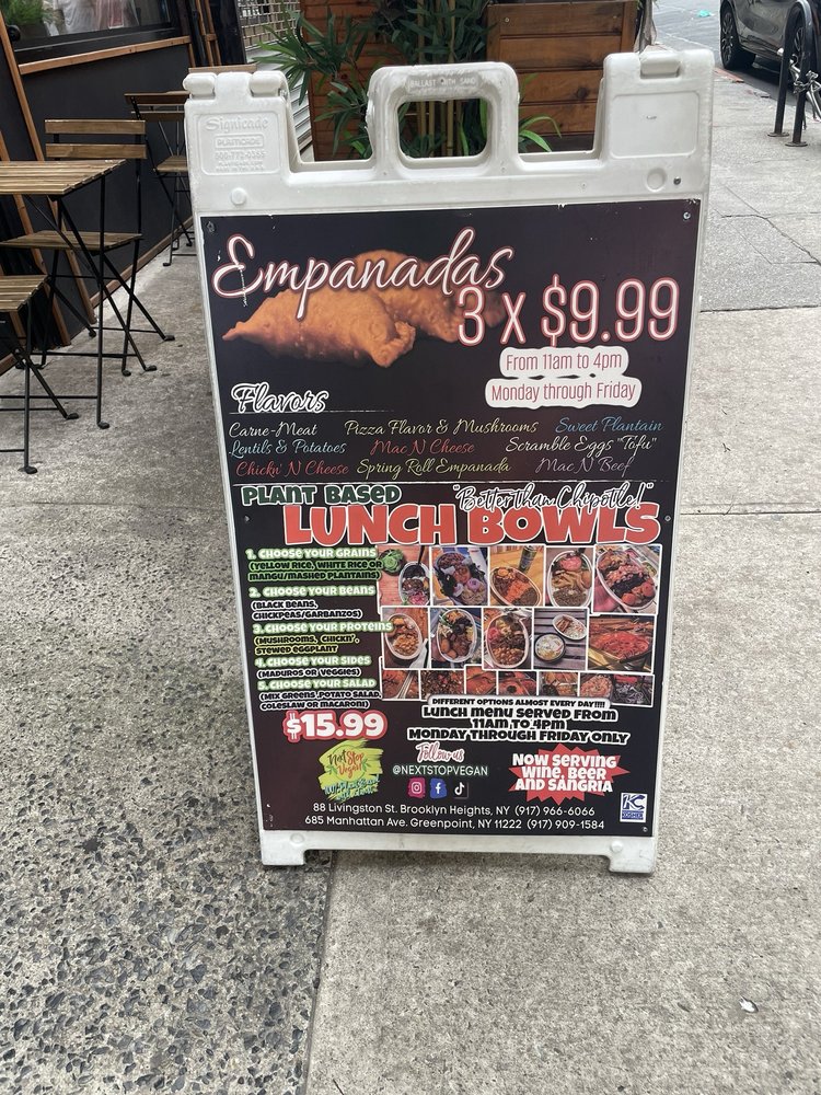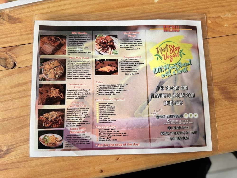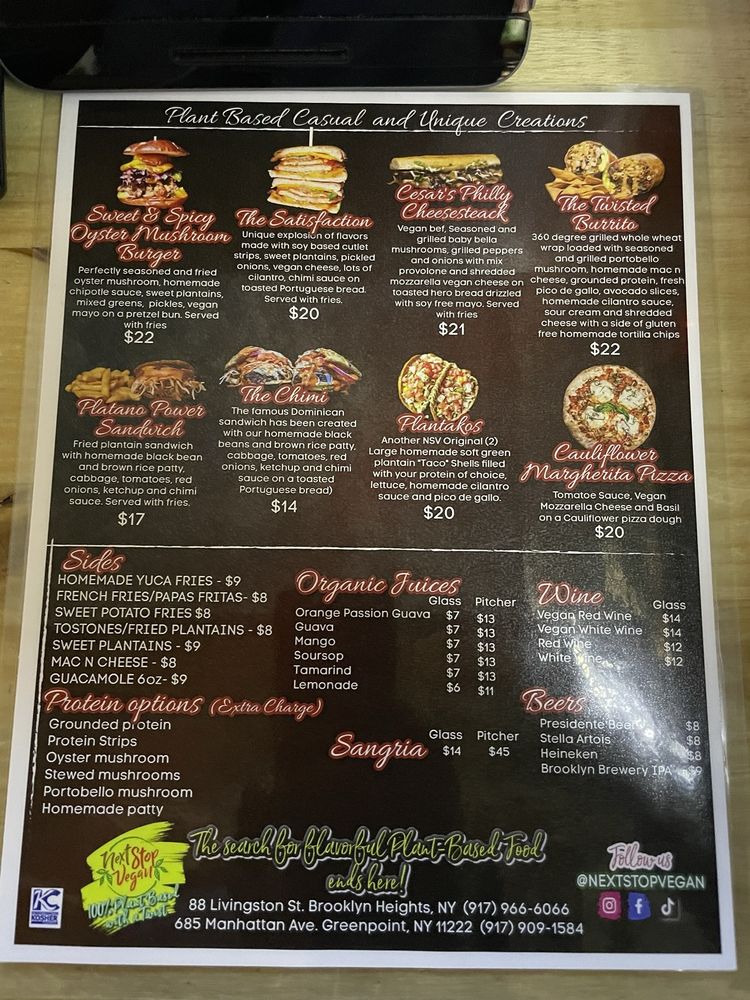 Next Stop Vegan is a Dominican-Vegan-Burger joint located in Brooklyn, NY. Known for its flavorful and creative vegan options, the menu offers a variety of dishes like El Plato Clasico gluten-free, mushroom burgers, and empanadas with unique fillings such as lentils and potatoes. The customer reviews rave about the delicious food, friendly service, and cozy ambiance. Popular dishes include the crispy mushroom sandwich, yaroa empanada, and the classic plate with mushrooms, rice, plantains, and salad. The restaurant is commended for its Latin-packed mixed flavors, quick service, and generous portion sizes. Overall, Next Stop Vegan is a must-visit spot for those seeking flavorful vegan dishes in a welcoming environment.